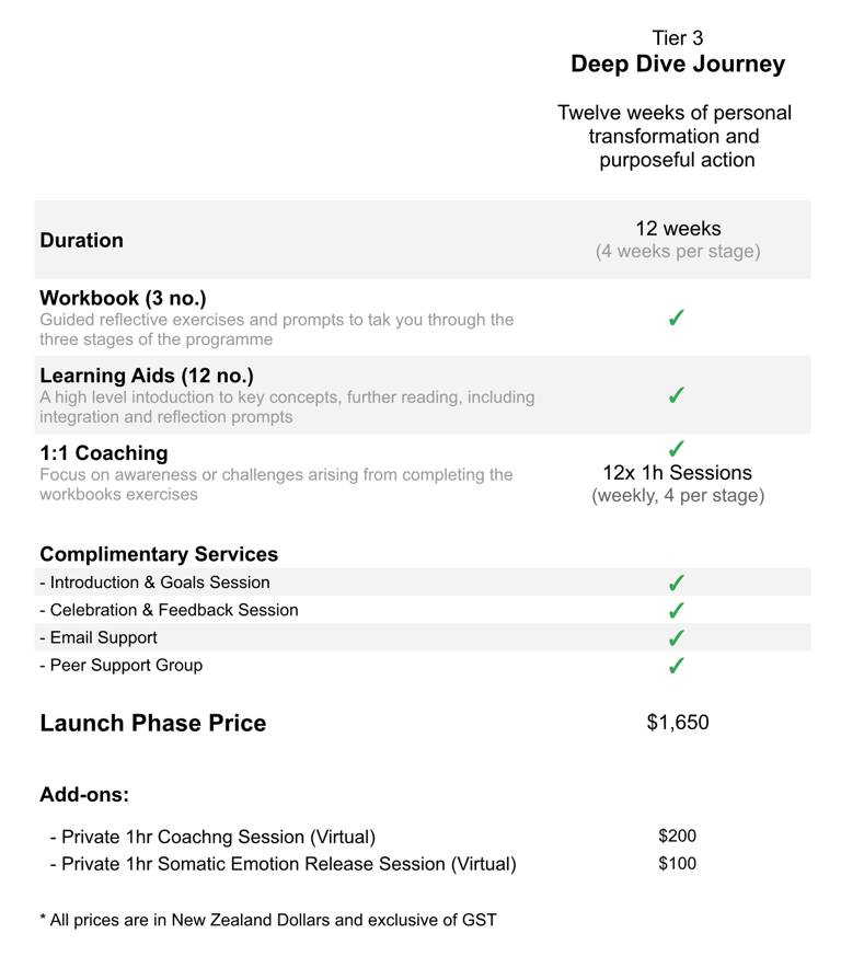 You have the option to journey through one stage at a time, at your own pace or join me for the full experience and join the 12-week programme to journey through all three stages progressively.